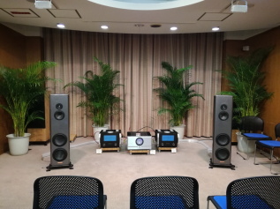 今回のお目当ては世界最高峰ハイファイスピーカーブランド、MAGICO Technology社のスピーカーシステムです。Magico(マジコ)は持前の超高性能さでは頭一つ抜けた存在で、お値段の方も飛びぬけております。写真はエレクトリのブースのMagico S3 Mk2、ペアで400万円超です。3次元マトリックスフレームワークによって世界一リジットに固められた鳴かない箱。トゥイーターにはダイヤモンドコート・ベリリウム振動板が、ミッドレンジとウーファーには鋼鉄の100倍の強度を持つナノグラフェン、マルチウォールカーボンファイバーと硬質発泡体が用いられています。音の傾向ですが、人の声が実にリアルです。低音が控えめで高音が心地よく耳に刺さる感じ、不純物が一切ない純水のような音色。ユニットから放出される音の驚異的な透明度の高さには度胆を抜かれます。