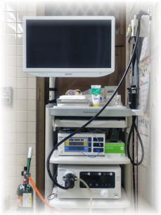 お尻から入れて大腸を観察するカメラです。苦痛の少ない細径タイプのスコープを用い、さらに炭酸ガスを併用することによってスムーズな検査が可能となっています。またポリープ切除の際はコールドスネアーの使用によって出血や穿孔のリスクを減らし、より安全な切除を行っています。